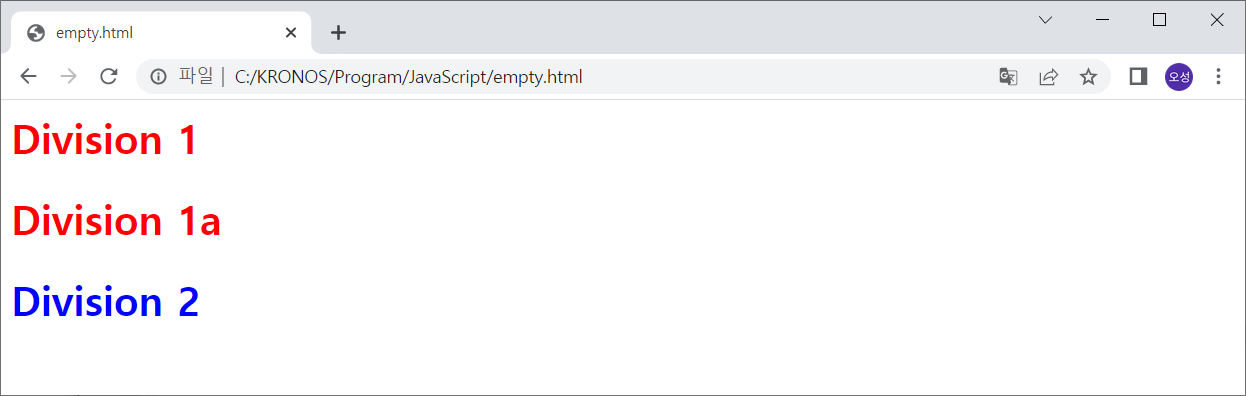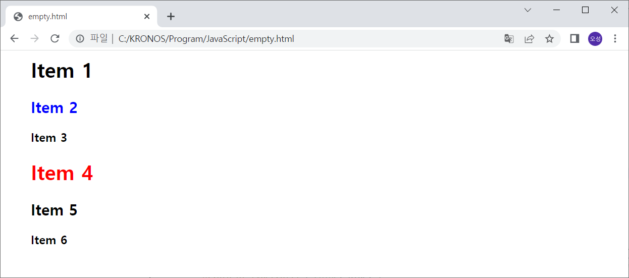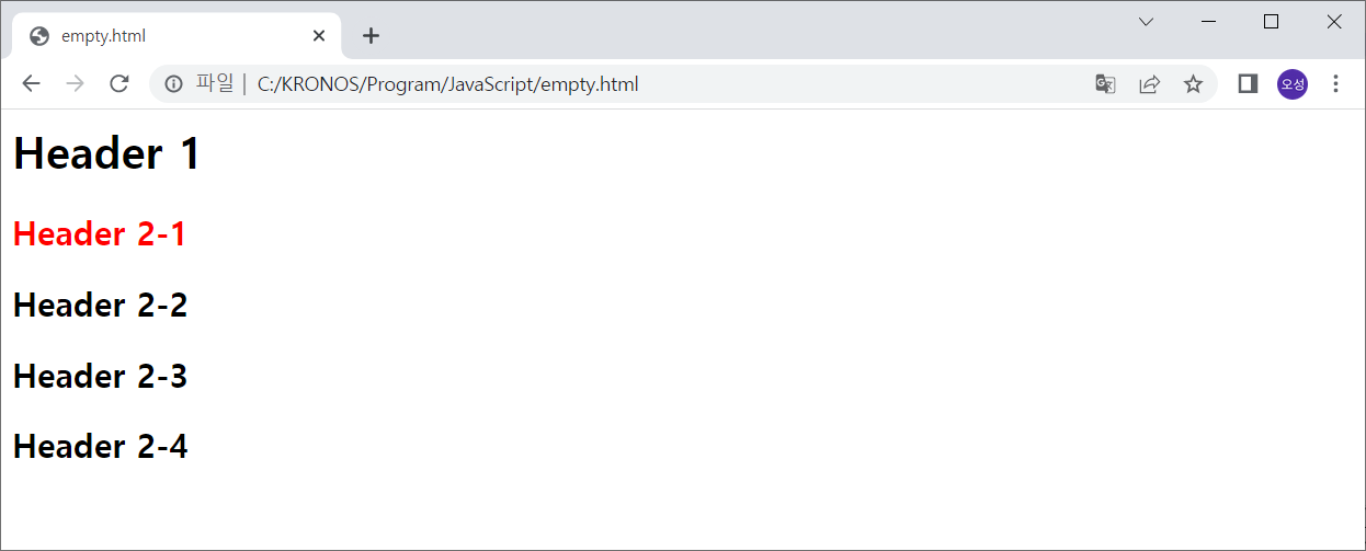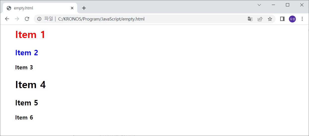 - 모든 h1, h2 태그의 색상이 파란색으로 변경